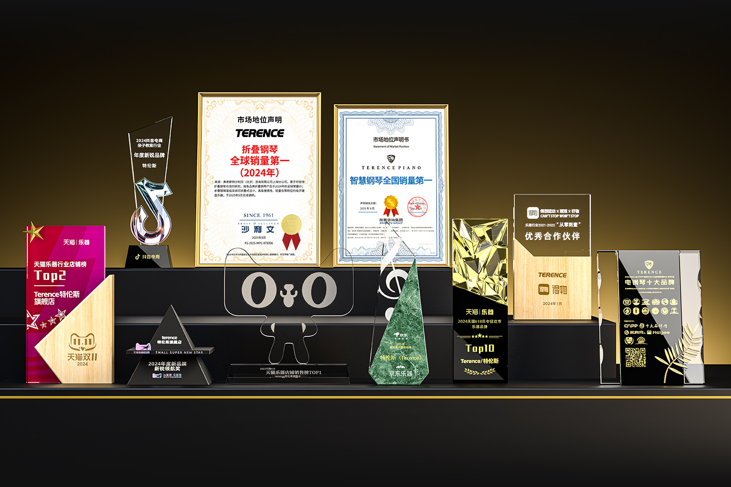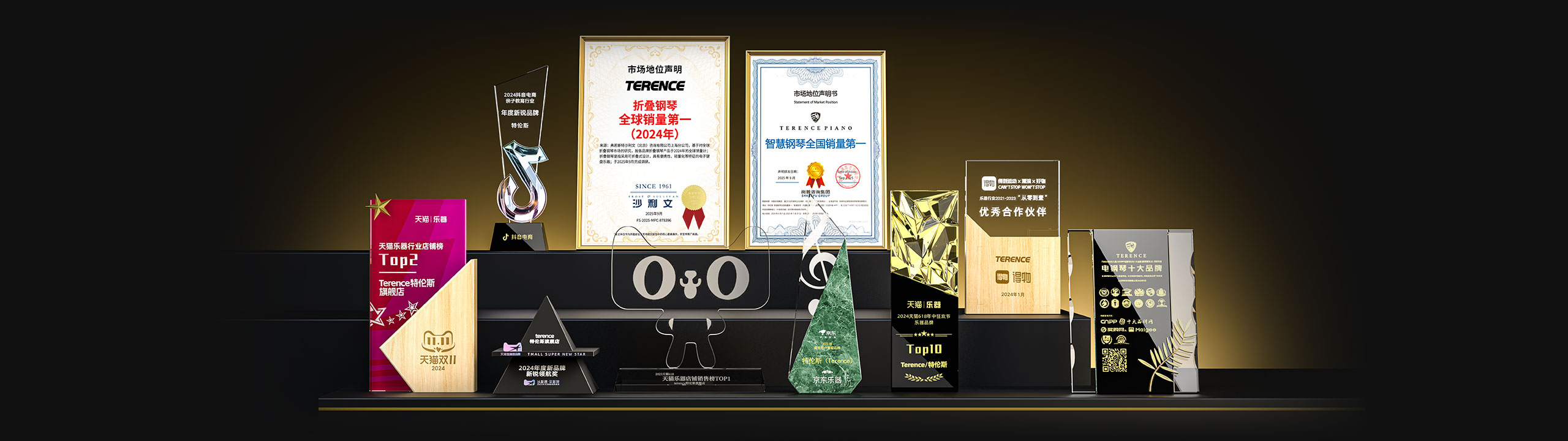 特倫斯創(chuàng)新科技榮獲:折疊鋼琴全球銷量第一(2024年)[1]、智慧鋼琴全國銷量第一[2]、2022年天貓樂器行業(yè)TOP1、2023年天貓618樂器行業(yè)TOP1、2024抖音電商年度新銳品牌、2024天貓樂器店鋪TOP2、2024天貓年度新品牌新銳領(lǐng)航獎(jiǎng)、2023年京東最受用戶喜愛品牌等獎(jiǎng)項(xiàng);